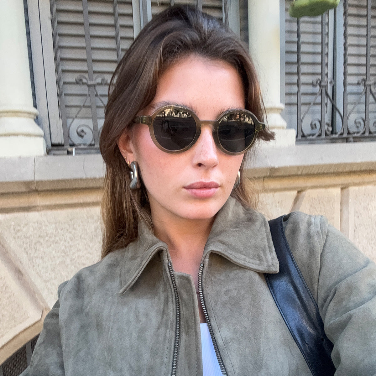 The Ombo sunglasses reimagine the classic round frame with a contemporary style. Their balanced proportions bring an intellectual and avant-garde touch, making them a versatile and timeless icon.